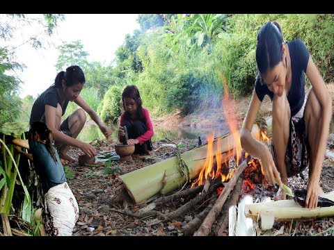 • Primitive Technology – Girls Cooking Shrimp With C...